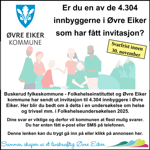 10. november går startskuddet for Buskeruds største folkehelseundersøkelse. 62.210 innbyggere i Buskerud inviteres til å svare på spørsmål om hvordan...