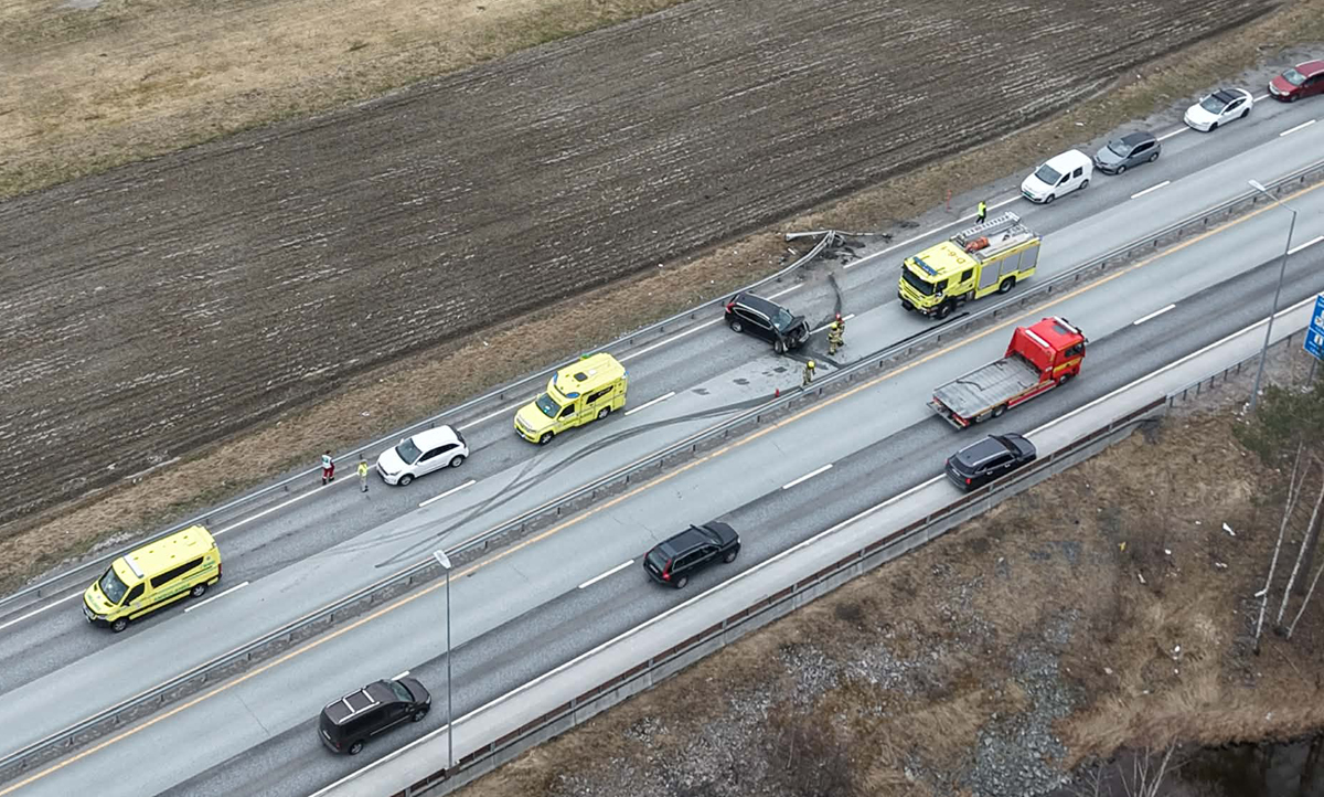 Klokken 12.35 meldte politiet at nødetatene rykket ut etter melding om en trafikkulykke på E134 i Hokksund.
