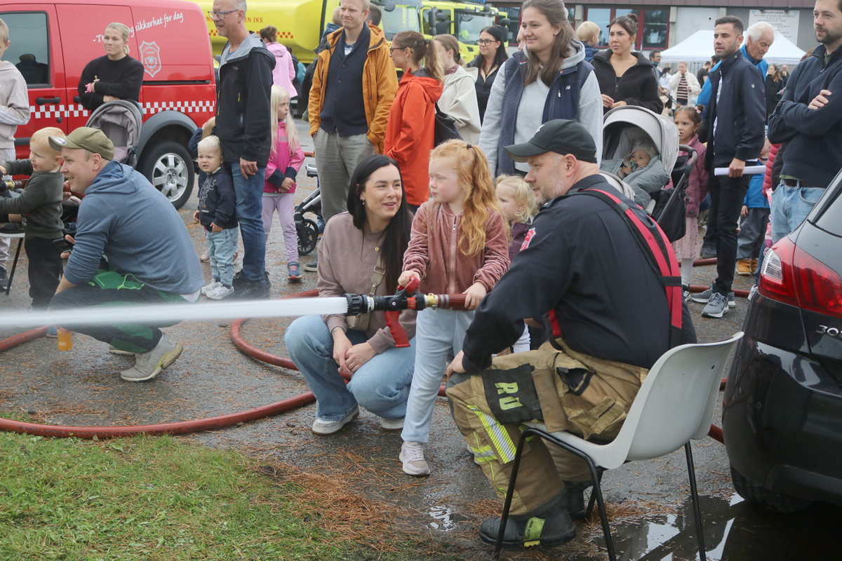 Unger og foreldre i lange køer for å teste ut brannslangen. Dette er nemlig skikkelig gøy.