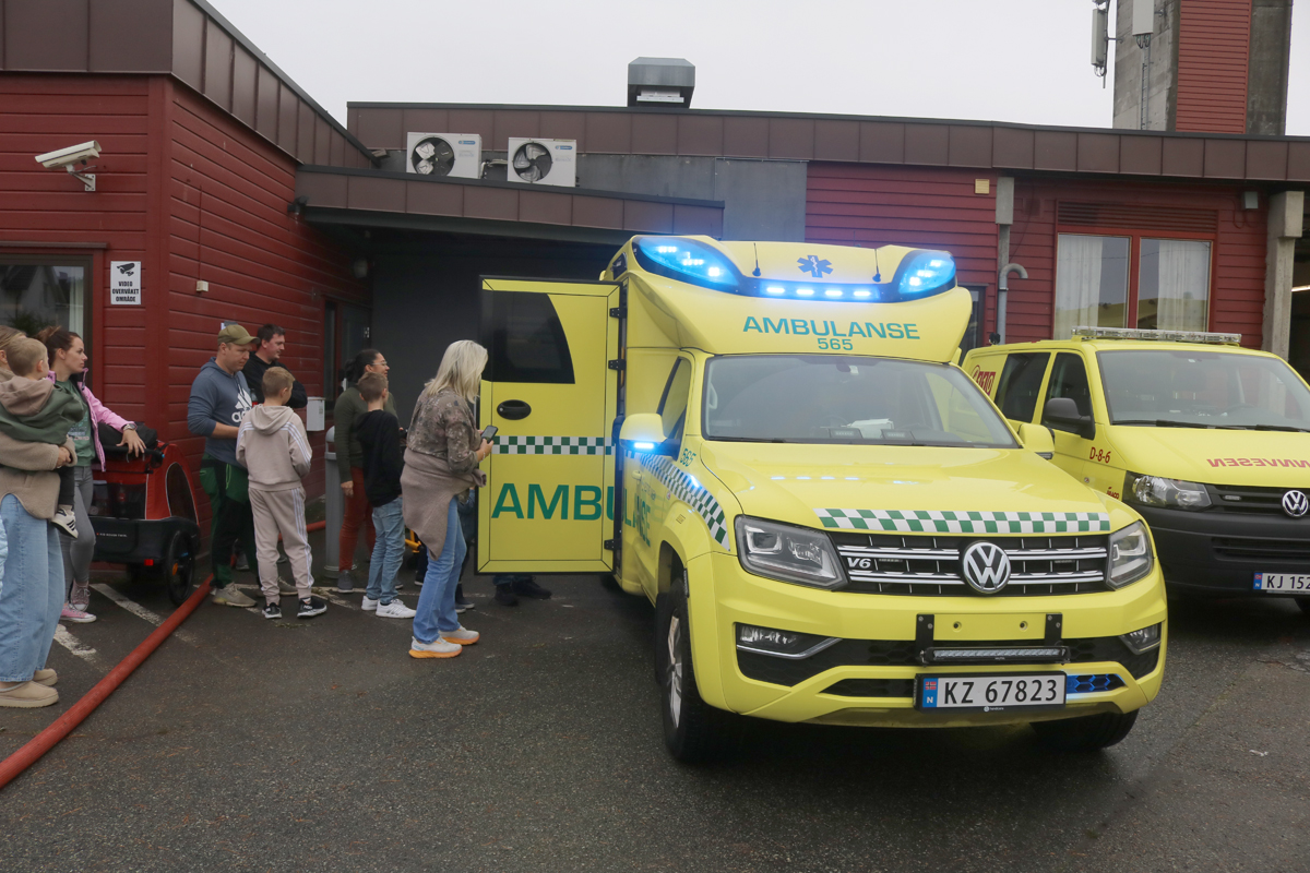 Blålys og ambulanser er også spennende og her var det mange som ville se hvordan en ambulanse så ut innvendig og hvordan de var utstyrt.