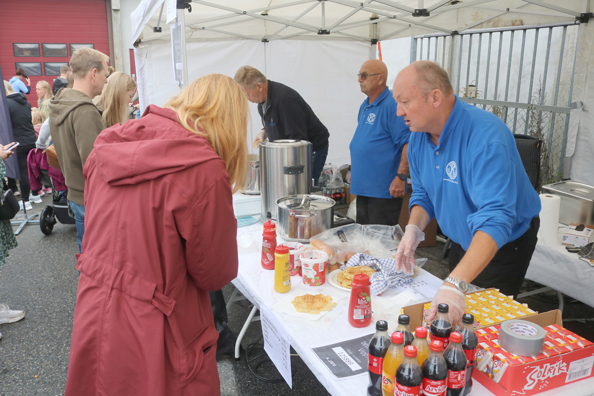 Tore Hoen og Hans Erik Andersen i Kiwanis hadde mer enn nok å gjøre i teltet med servering.