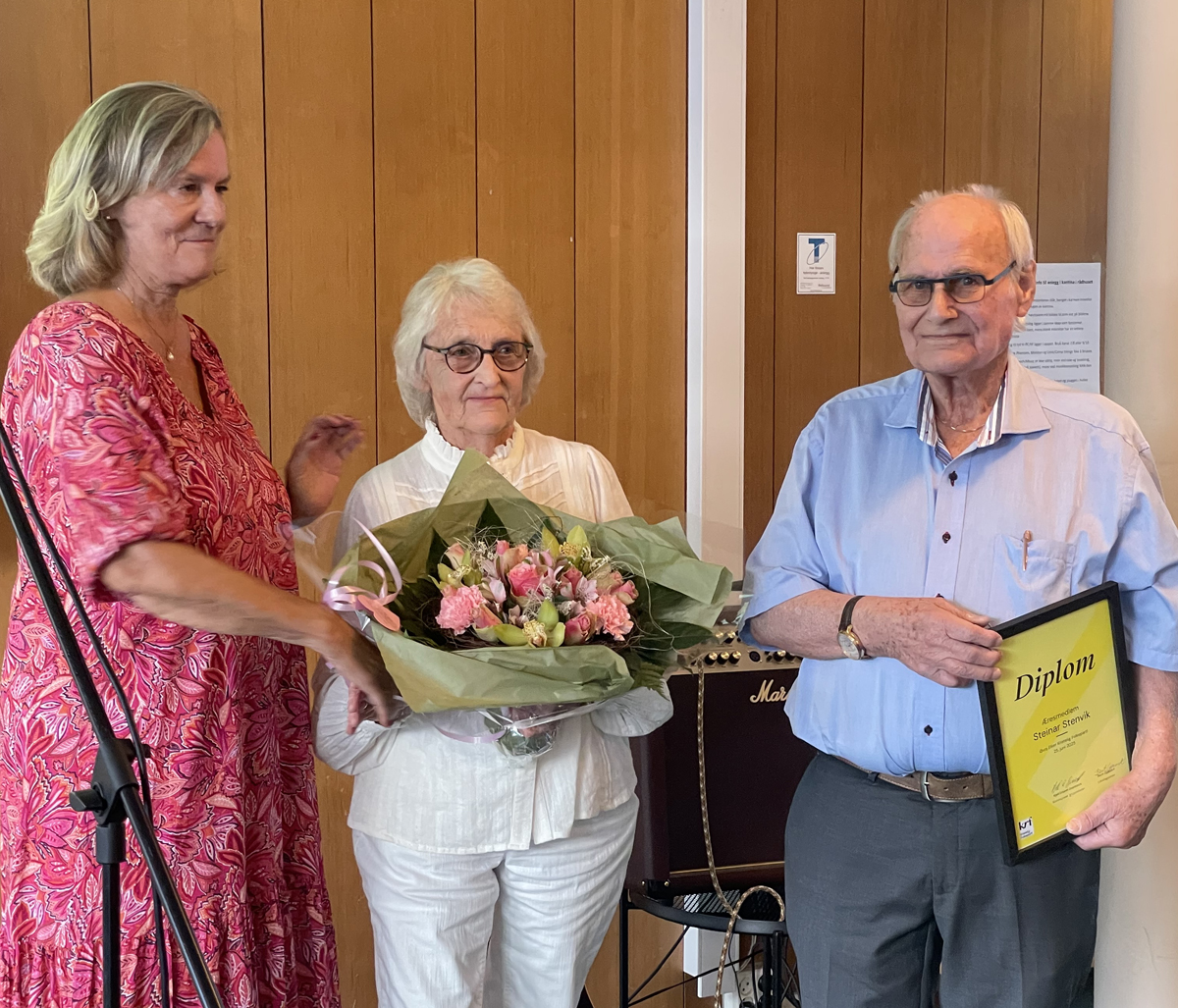 Billy Taranger gav Steinar Stenvik æresmedlemsprisen for lang og trofast tjeneste i partiet som medlem i kommunestyret i mange perioder. Leder for lokallaget og medlem i forskjellige utvalg og hans arbeid som har vært betydelig og satt spor etter seg, både i kommunen, men også i partiet generelt.