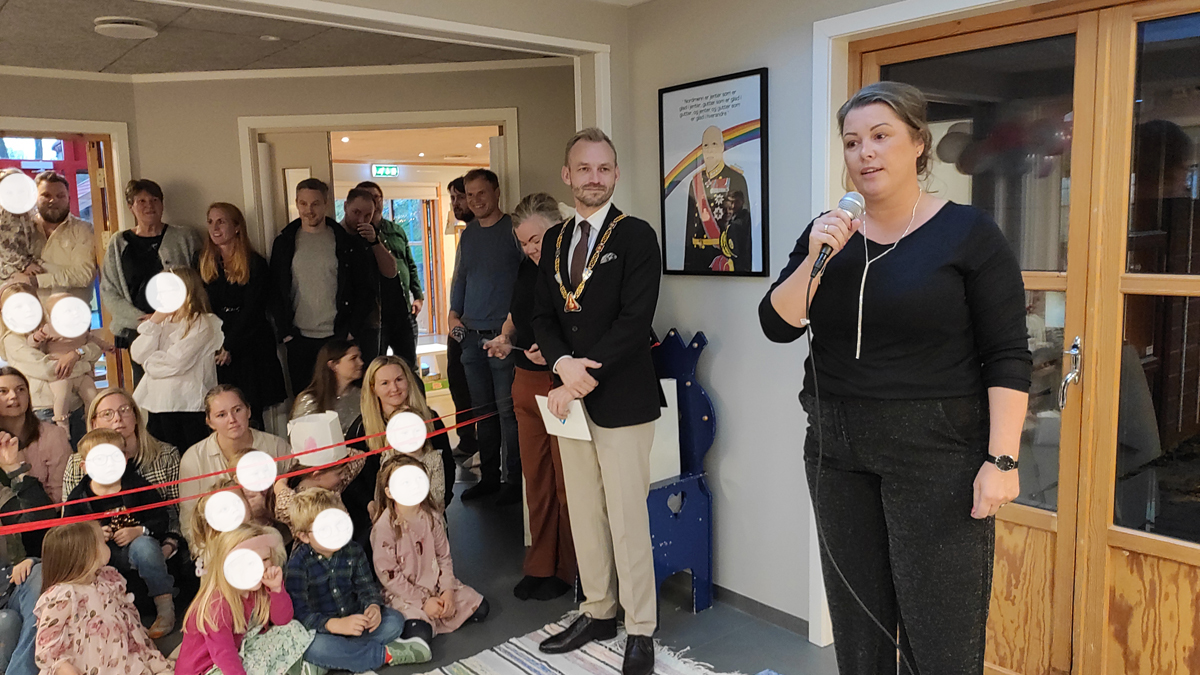 Flere gjester var bedt inn til denne åpningen. Her var naboer som måtte være tålmodige gjennom sommeren og høsten, her var snekkere og håndverkere som hadde stått på og som måtte forholde seg til en haug med unger mens de jobbet. Og selvsagt var det mange foreldre og andre foresatt som hadde tatt turen for å se hvordan det var blitt i den «nye» barnehagen.