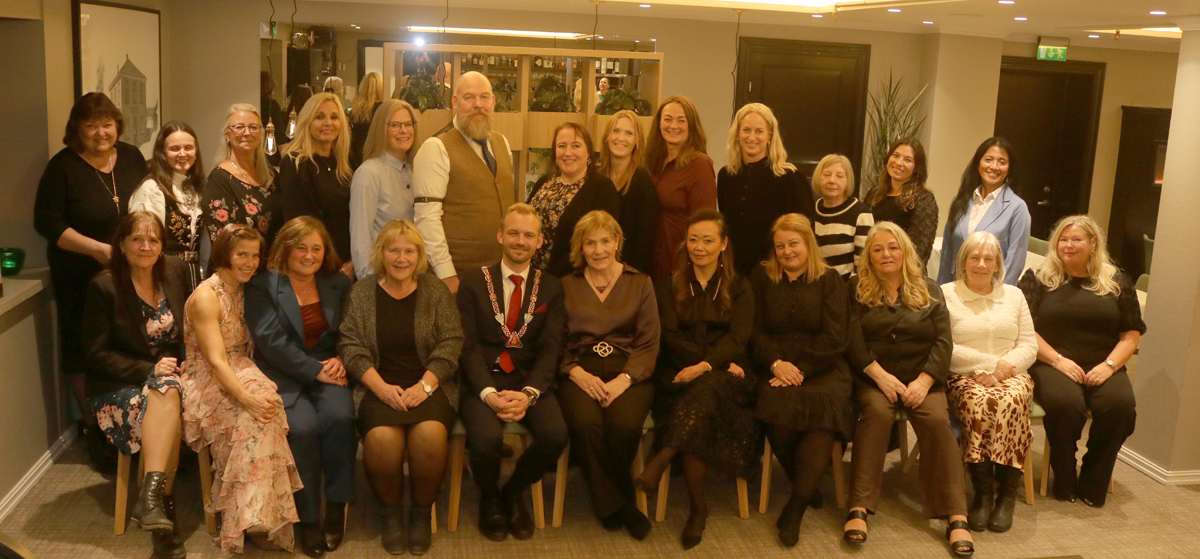Som vi ser av bildet er det kvinner som holder kommunen gående og her var det mest fra helse og velferd samt fra skolesektoren. Ett hederlig unntak var det i John Kaasa, som til daglig er å finne på Vestfossen barneskole. Han hadde da også fått æren av å takke for maten og det gjorde han med å erklære hat mot matpakken. Riktignok på en humoristisk måte.