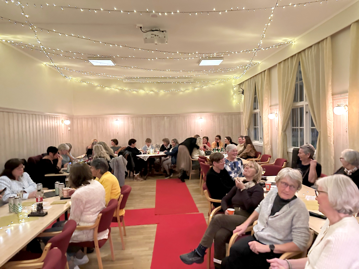 Festpyntet publikum fylte opp Fjerdingstad Grendehus. En slik dameaften er populært og damene slapp seg løs utover kvelden.
