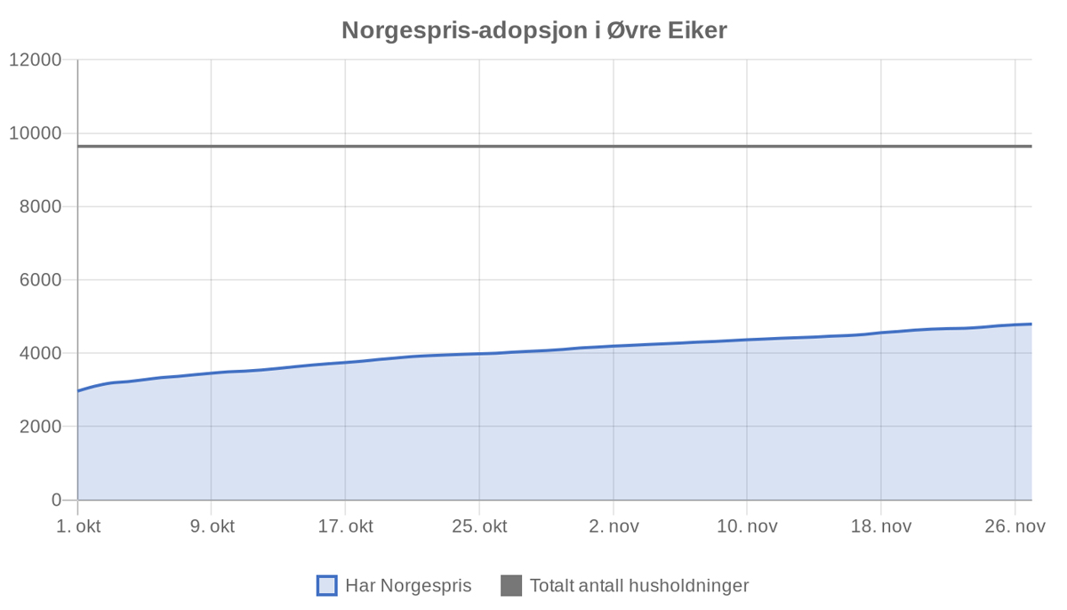 I Øvre Eiker kommune har 49,7 prosent av husholdningene valgt Norgespris. På Østlandet har 48,8 prosent gjort samme valget.