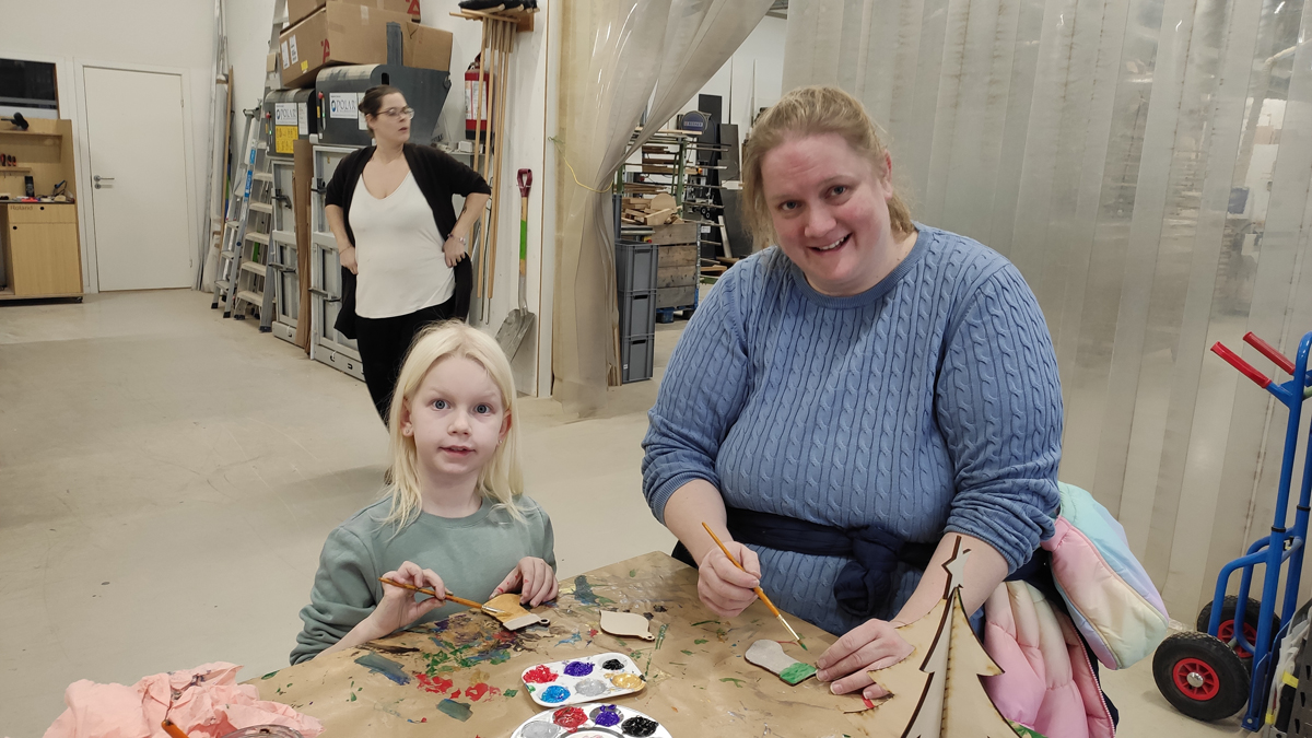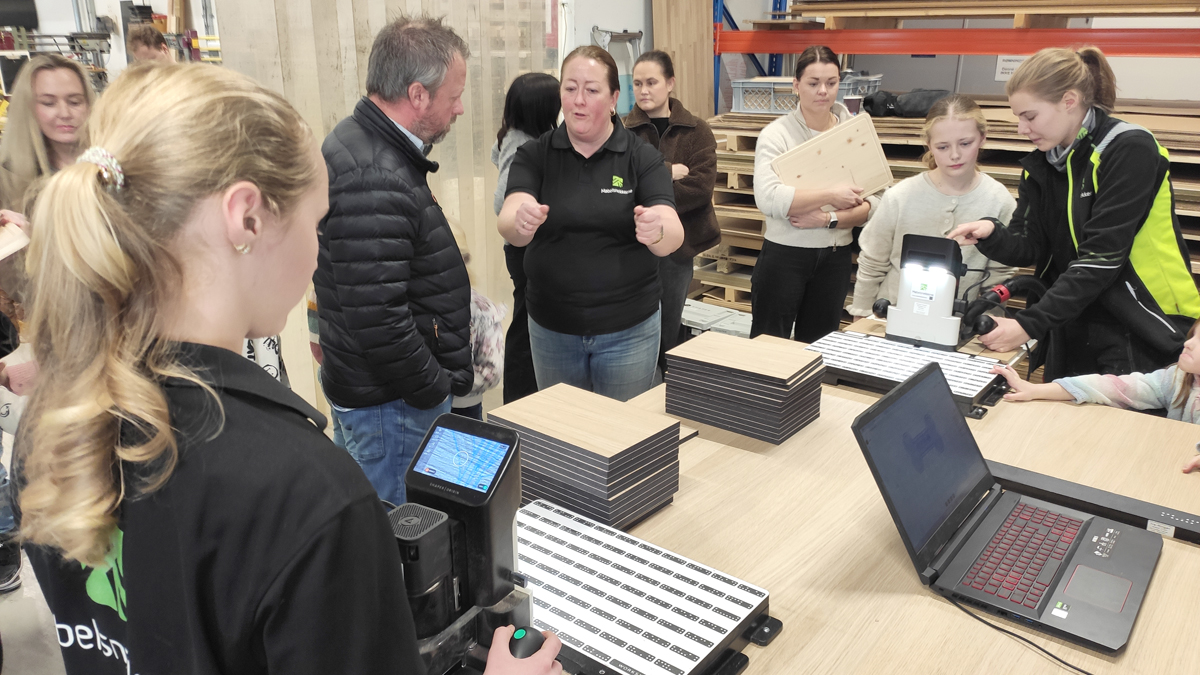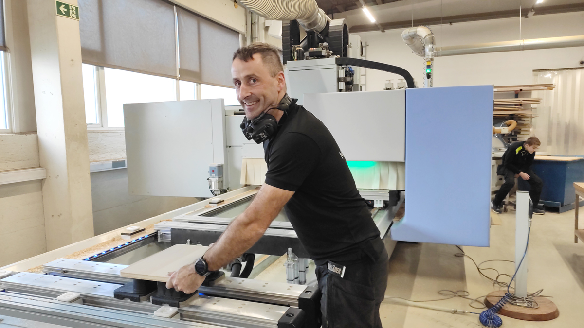 Som de fleste bedrifter som leverer til byggebransjen, har 2025 vært litt for stille. Det har gitt tid til å planlegge et juleverksted som de har hatt tanker om i flere år, men ikke hatt tid til før nå. Lørdag var det derfor invitert til juleverksted av det litt mer spesielle slaget. For her var det datastyrte freser som produserte skjærefjøler på løpende bånd, her var det freser du kunne lage ditt eget mønster med og her var det pussing og maling.