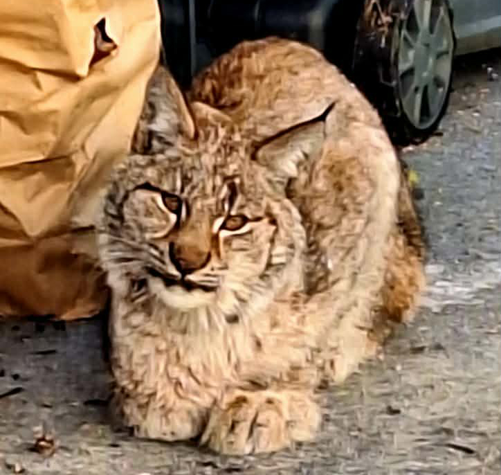 Jeg ble tilkalt nær midnatt lørdag kveld, men gjorde ikke noe da. Var på stedet i dag formiddag, og gaupeungen er høyst trolig morløs og helt sikkert skrubbsulten, den har vært der et par dager, har kikka inn i hus til folk fra vinduer i terrasser, ble sett liggende i en sofa på en terrasse, og den beit ei lita veskebikkje i hodet. Jeg så bikkja, og den virka relativt OK – for meg. Gaupeungen er åpenbart dårlig, men trolig pga. sult. Avgjørelsen om dens videre skjebne blir ifølge SNOs Espen Marker tatt enten i kveld eller i morra. Det vedlagte bildet tok jeg med telefon på 4-5 meters hold. Darbu, Øvre Eiker 11.01.2026.
