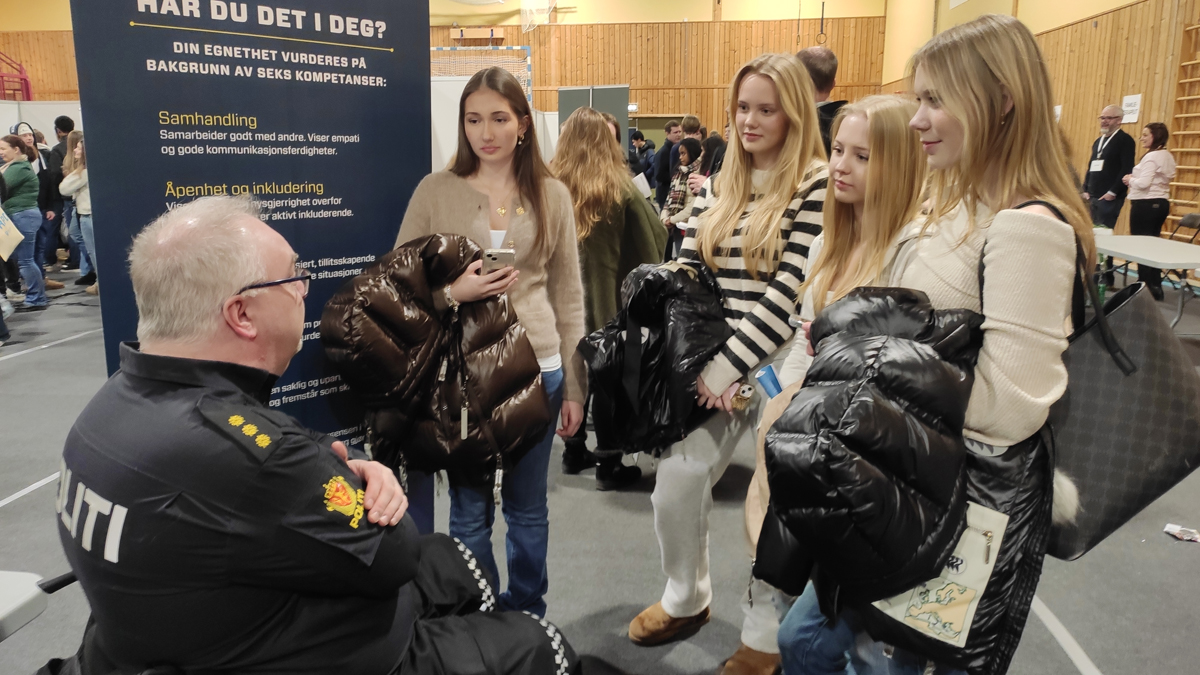 Det være seg innen helse- og sosialfag, byggfag, politi eller brannvesen. At nettopp politi og brannvesen er populære yrker er kjent for de fleste, men noen ganger kan søkningen være i største laget. Ole Trillhus i politiet hadde i hvert fall nok å gjøre med å svare på de mange spørsmålene fra ungdommene.
