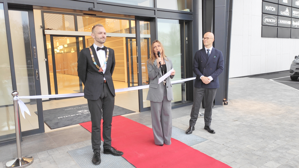 Ordfører Adrian Tollefsen, senterleder Gry Harbu og eiendoms- og utviklingsdirektør Stian Kjellhov foran den nye inngangen ved åpningen 13. november. Satsingen gir nå frukter.