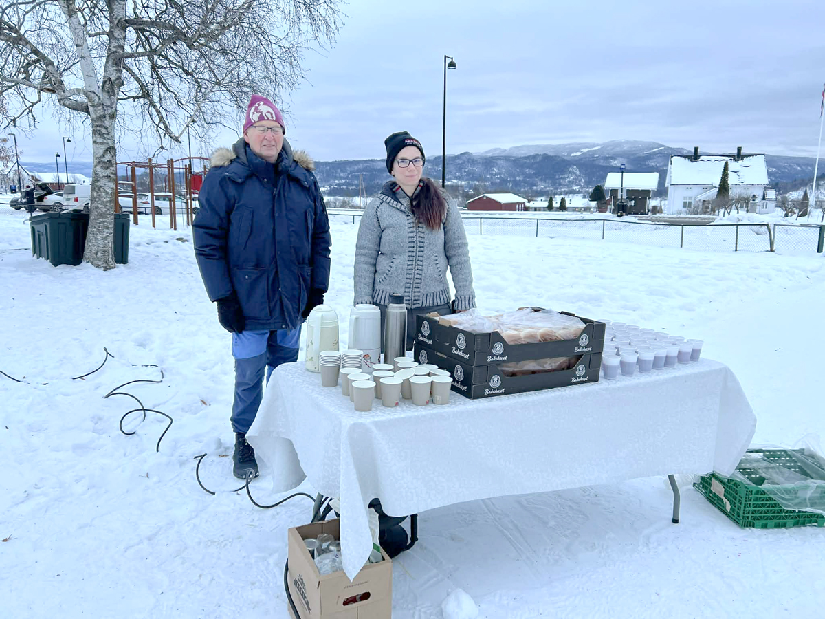 Også ordføreren hadde tatt turen ut i kulda. Han takket Sparebankstiftelsen DNB og FAU her på Darbu som nå har fått midler til å kjøpe inn isbaneutstyr og er klare til å ta isbanen i bruk.