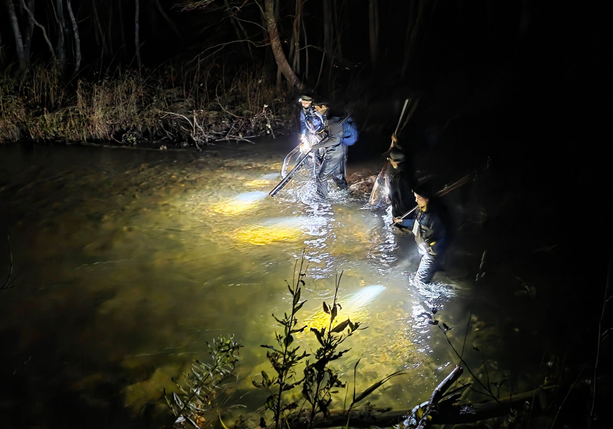 Lysfiske for å telle laks og sjøørret. (Foto: Øyvind Solem, NINA)