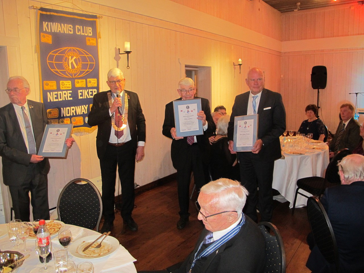 Et av kveldens høydepunkter var utdelingen av Øyen-medaljer. Fra KC Nedre Eiker ble Helge Berget, Roar J. Endung og Petter Solberg, mens Tore Brynslund mottok medaljen fra KC Øvre Eiker. Utmerkelsene ble gitt som anerkjennelse for betydelig innsats i Kiwanis’ ånd gjennom mange år.