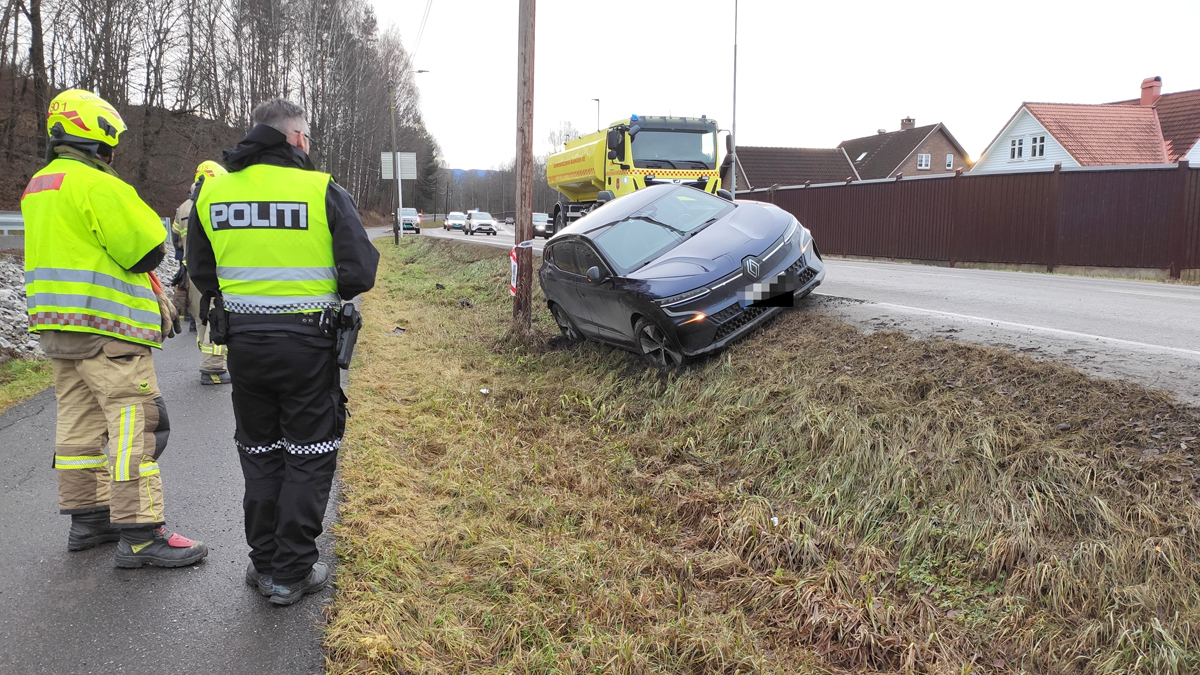 (Oppdatert kl. 10.00) Klokken 23.11 fikk nødetatene melding om en bil som hadde kjørt i autovernet på Grosvoldveien ved Krekling...